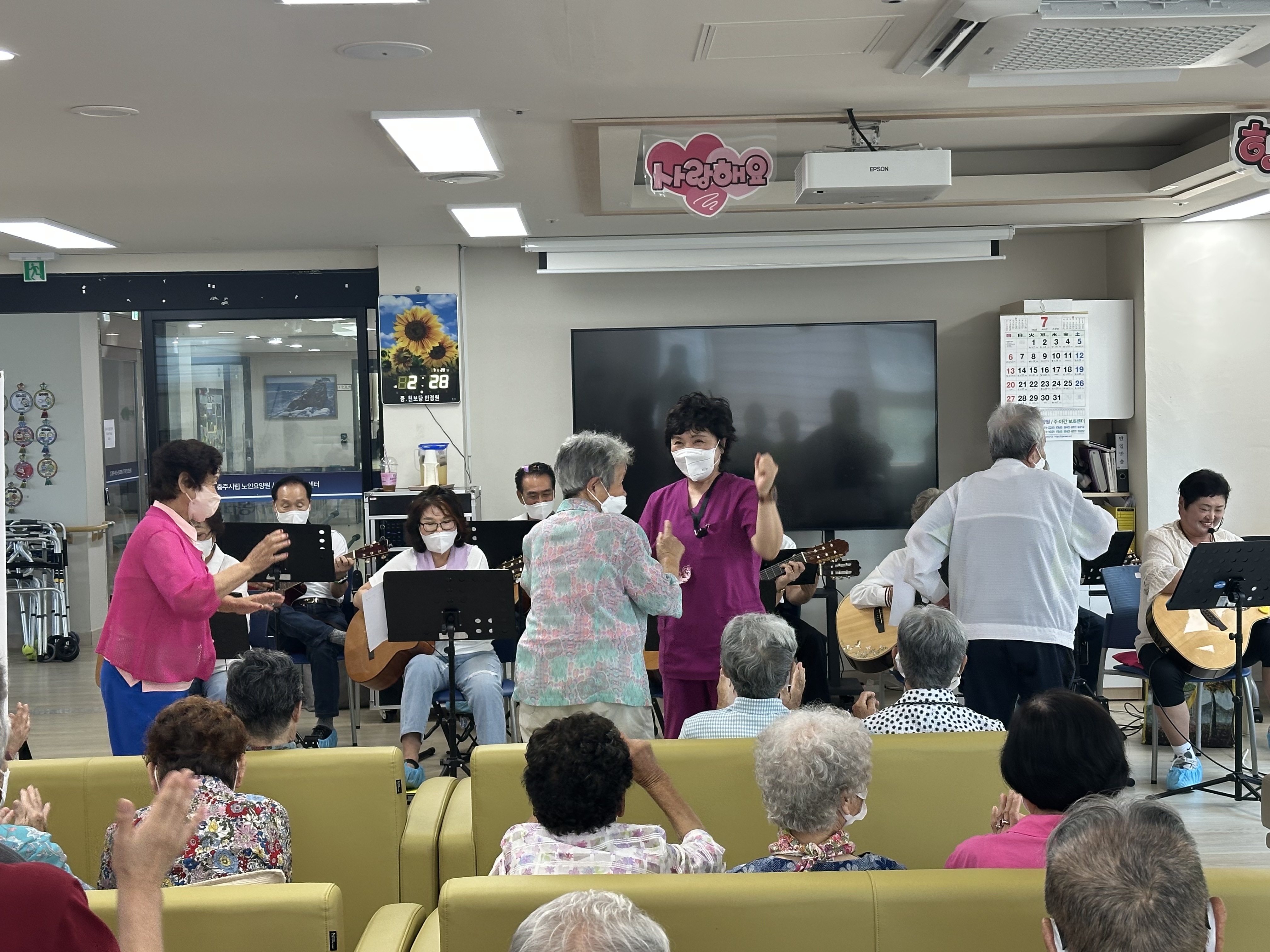 7월29일(화) 노인활성화지원사업 기타봉사단 '라일락'이 충주시립주야간보호센터에서 공연활동을 하였습니다.