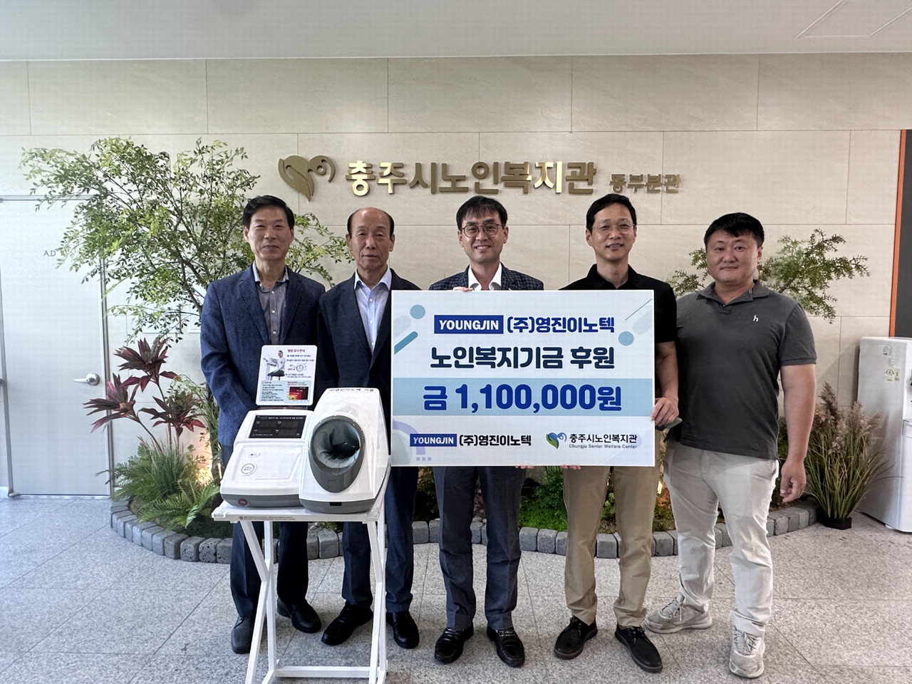 또 ㈜영진이노텍(대표 서영진)은 올해 6월에 개관한 충주시노인복지관 동부분관(관장 김웅)에 후원금 110만 원을 전달했다.