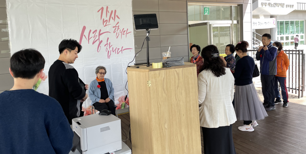 • 5월 8일 어버이날을 맞이하여 지역 내 어르신에게 감사의 마음으로 무료식사, 공연, 카네이션 전달 등의 다양한 서비스를 제공하고 있습니다.