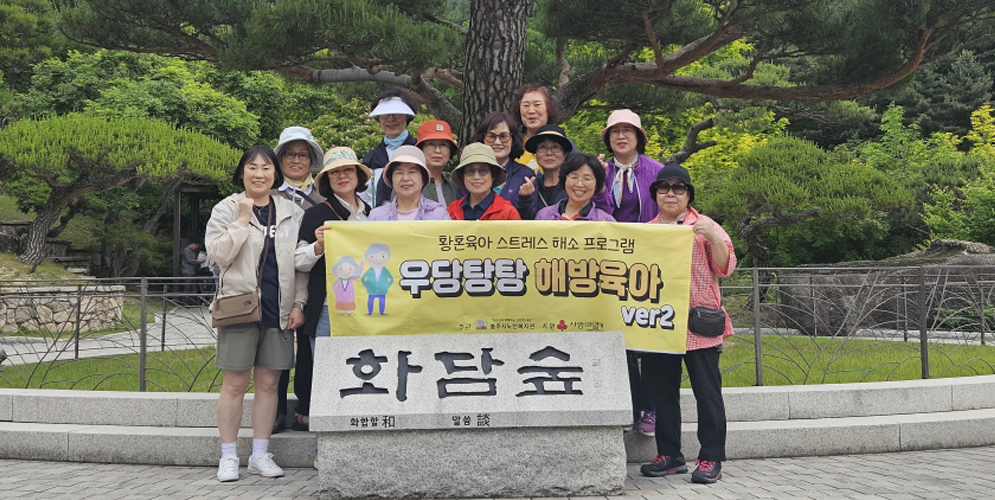 황혼육아를 겪는 노인의 스트레스 해소 및 사회참여 활동을 지원하는 통합치유프로그램입니다.